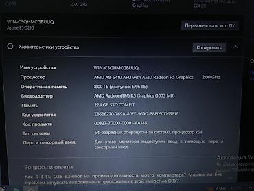 - Процессор: AMD A8-6410 APU, 4 ядра, 2.0 ГГц