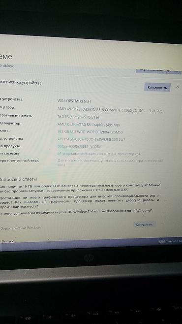 - Процессор: AMD A9-9425 (Radeon R5, 2C+3G), 3.10 ГГц