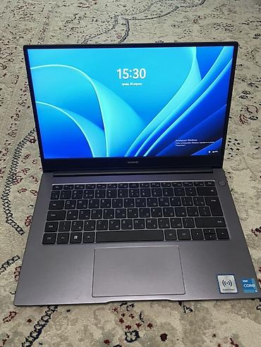 Ноутбук Huawei (серия MateBook), диагональ 15–16" Основные характеристики: - Процессор Intel Core (наклейка Intel Core на корпусе) - Диагональ экрана около 15–16", тонкие рамки - Клавиатура с русс...