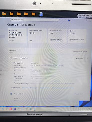 - Процессор: Intel Core i7-4700MQ, 4 ядра/8 потоков, 2.4–3.4 ГГц
