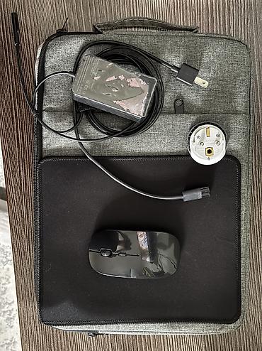 В комплекте на фото видно сумку, мышка, зарядка, коврик