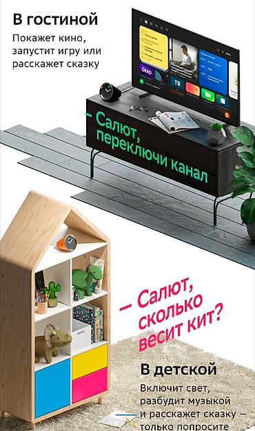 Время отдыхать • Смотрите 90 000+ фильмов и сериалов в онлайн-кинотеатре Okko • Оцените 150+ ТВ-каналов в цифровом качестве от сервиса Смотрёшка • Пользуйтесь приложениями IVI, Wink, more. tv и KION • Наслаждайтесь видео в интернете — от роликов с котиками до выпусков любимых блогеров Время играть • Запускайте компьютерные игры на своём ТВ в высоком качестве через сервис SberPlay • Играйте в игры из магазинов Steam, Origin и Epic Games Store • Подключайте геймпады по Bluetooth или управляйте игрой через виртуальный геймпад в приложении Салют на смартфоне Время слушать • Слушайте 70+ млн треков в высоком качестве через сервис СберЗвук • Выбирайте любимое радио, подкасты, плейлисты и даже сказки • Веселитесь и подпевайте артистам с функцией «Покажи слова» Время поручать • Доверяйте виртуальным ассистентам Салют любые дела — просто скажите, что вам нужно: таймер, будильник, столик в ресторане или запись в салон красоты.