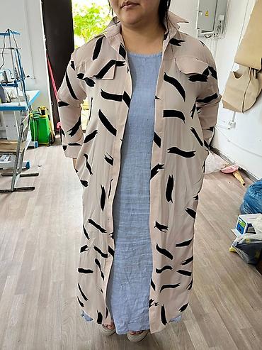 - Универсальная вещь: носите как легкий плащ поверх платья/джинсов, либо как самостоятельное платье-рубашку