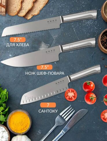 • Нож для хлеба: с зубчатым лезвием для аккуратной нарезки хлебобулочных изделий;