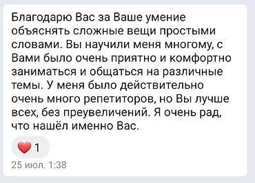 Специализируюсь на подготовке к ОРТ, ЕНТ по биологии. Готовлю к олимпиадам Кыргызстана и Казахстана.