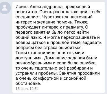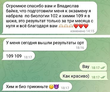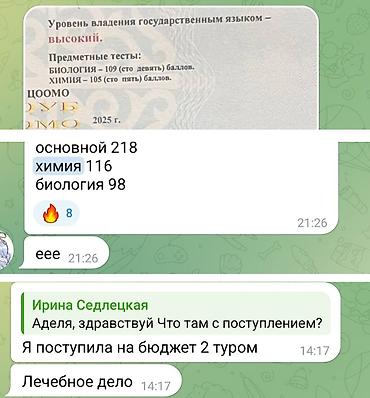 Стоимость за месяц – 3000 сом. Есть возможность заниматься также биологией с преподавателем Владиславом, с которым мы на протяжении 7 лет работаем в паре. Формат такой же, при выборе двух предметов общая стоимость – 5000 сом за месяц (8 занятий по химии + 8 занятий по биологии).
