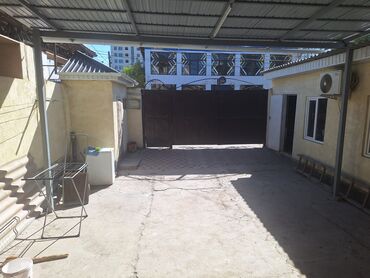 Предлагается дом, оснащенный козырьком для защиты от солнца и осадков. Вход на территорию осуществляется через металлические ворота с декоративными элементами. На фасаде дома установлен кондиционер. Внутри двора предусмотрена крытая зона, подходящая для парковки автомобиля или использования в качестве дополнительного пространства. Территория позволяет разместить несколько автомобилей. Окружение включает другие жилые строения, что указывает на жилой район.