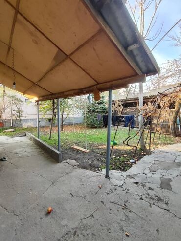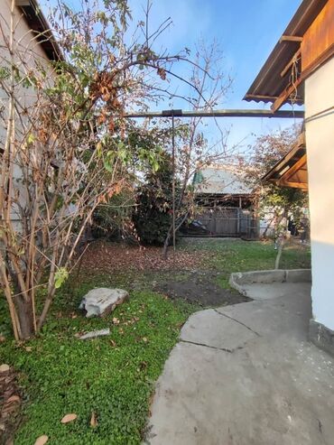- Двор частично бетонирован, есть зеленая зона/грядки вдоль забора.