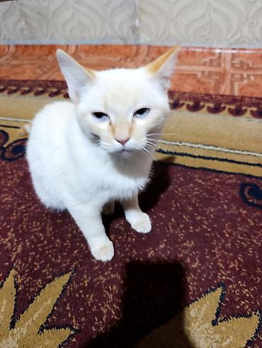 от дам даром Кошка домашняя, короткошёрстная, светлого кремово-белого окраса с более тёплыми оттенками на мордочке, ушках, лапках и хвосте. Глаза светлые. Компактного телосложения, аккуратные лапы, стоячие уши. Шерсть гладкая, плотная, легко ухаживать — достаточно регулярного вычёсывания мягкой щёткой.