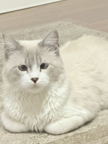 Порода: домашний кот с окрасом крем-пойнт (светлая шерсть с нежными кремовыми отметинами). Внешность: - Глаза ярко-голубые. - Нос и подушечки лап розовые. - Шерсть короткая, густая, бело-кремовая, ...
