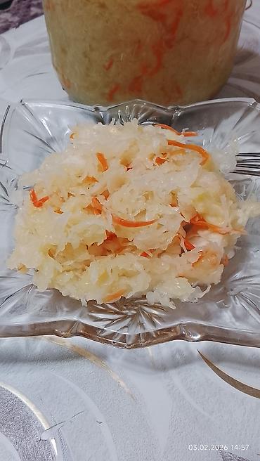 - Традиционный рецепт: белокочанная капуста, морковь и соль. Без уксуса, консервантов и лишних добавок.