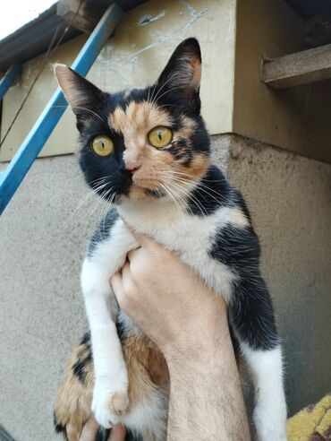 Кошка даром: Беспородная, 7 месяцев, Мальчик, Кастрирована, Метис, Приучена к лотку