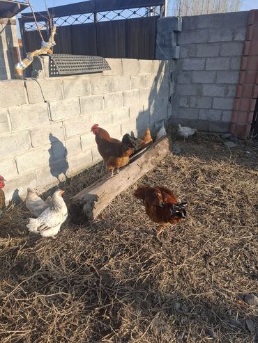 Домашние куры и петухи - Разные окрасы: белые, черные, рыжие, пестрые. - Взрослые особи на свободном выгуле в вольере с сеткой. - Подходят для разведения, получения яиц и мяса. - Кормление зерновы...