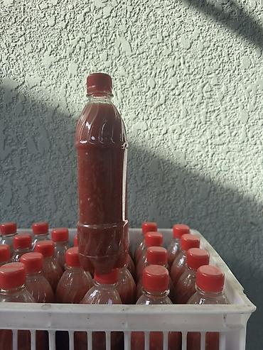 Домашний томат (острый) в пластиковых бутылках. Продам оптом, количество есть. - Натуральный состав: спелые томаты, без красителей и консервантов - Однородная текстура с кусочками томата,чеснока, ...