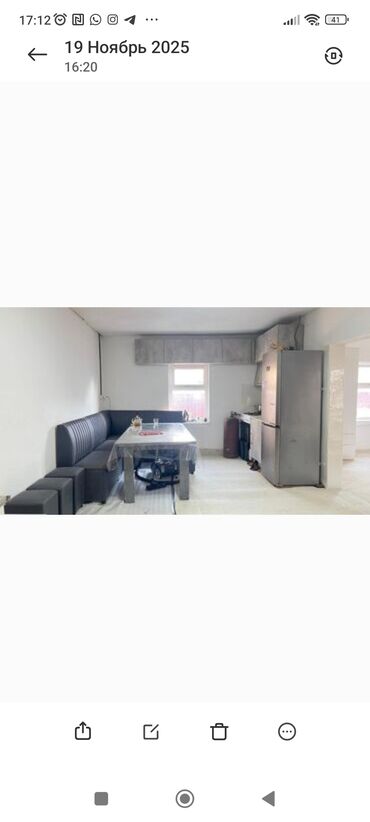 Кудайберген авторынок Сдается дом 1 комнаты и прихожая Площадь: 30 Участок: 3 Свежий ремонт С мебелью частично Аристон Холодильник Электрическое отопление Газовое отопление Санузел имеется