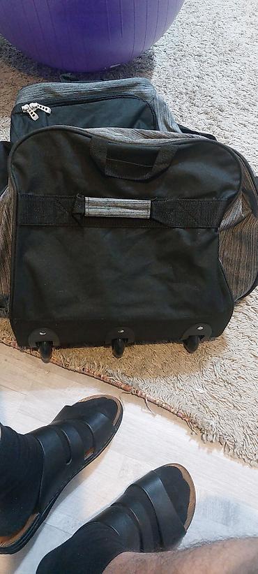 - Вместительная мягкая сумка-чемодан из плотной ткани, цвет: чёрный с серыми вставками.