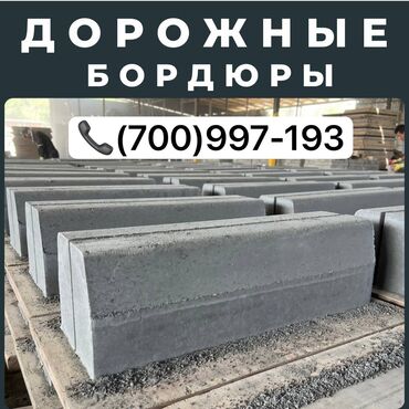 Дорожные бордюры Размер: длина 1 метр, высота 30 см Ширина: 15 см (стандарт) или 18 см (усиленный) Состав: цемент Jambyl M-500 + отсев + фибра (без щебня) Цвет: только серый. Гарантия: 8–10 лет. ...