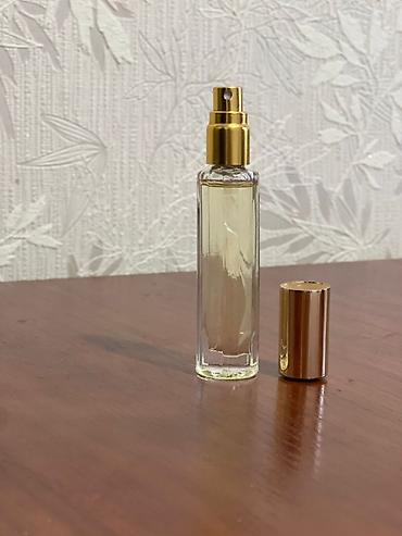 - Стеклянный флакон-атомайзер с золотистой крышкой