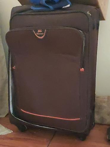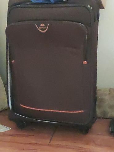 Дорожный чемодан на колесах, тканевый,б/у. - Размер: средний/большой формат (подходит для недельных поездок). - Материал: прочный текстиль в темно-фиолетовом цвете с оранжевыми акцентами. - Колеса...