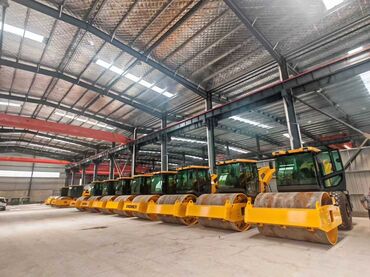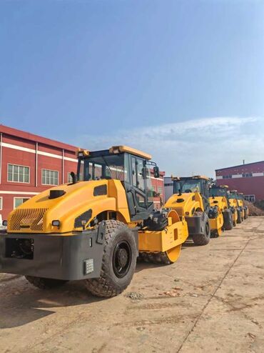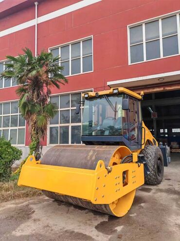Дорожный каток SINOMACH, предназначенный для уплотнения различных материалов при строительстве и ремонте дорог. Оснащен гладким передним вальцом и задними шинами для эффективного уплотнения. Модель выполнена в ярком желтом цвете с черными акцентами и имеет просторную кабину оператора с хорошей обзорностью. Подходит для использования на строительных площадках, при укладке асфальта и других работах по формированию дорожного полотна. Надежная машина для профессионального применения.