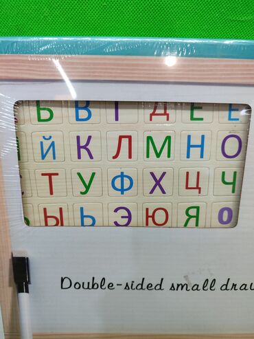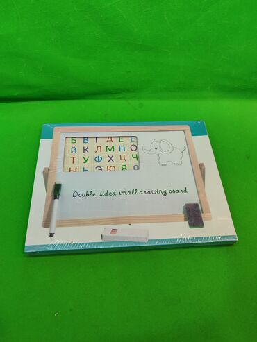 Комплектация товара: доска на подставке, стиралка, стираемый маркер, 3 мелка, набор магнитных русских букв💡