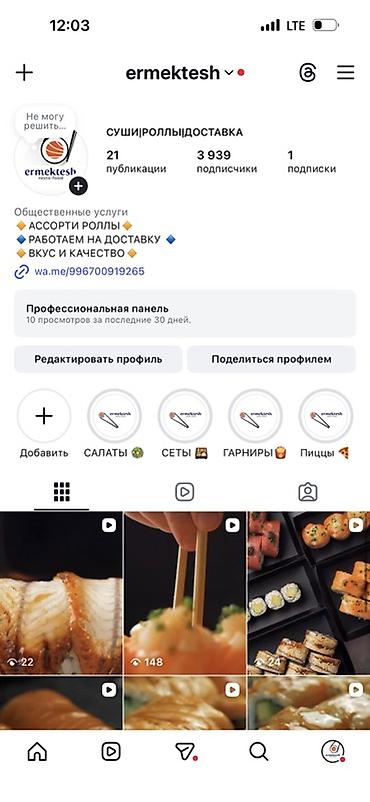 Готовый бизнес на продаже можете посмотреть в инстаграме Суши/роллы с доставкой от «ermektesh»