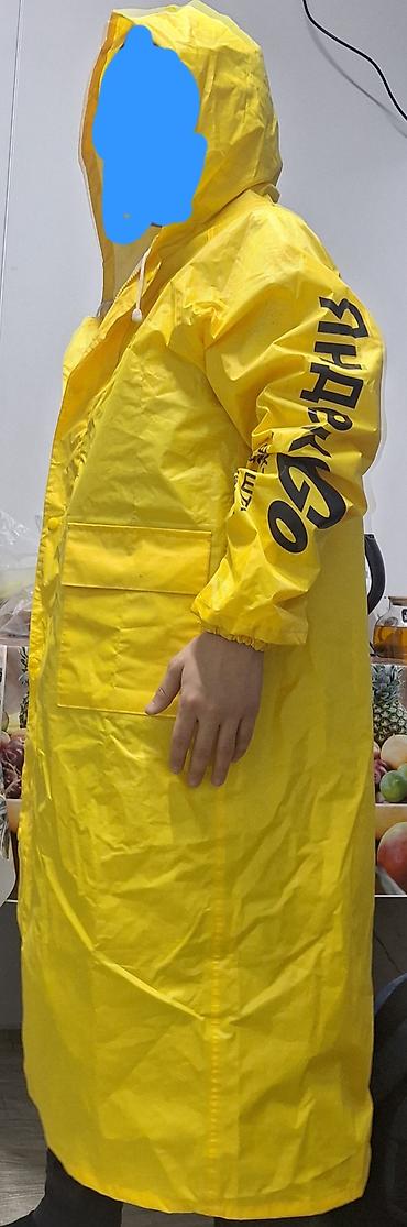 Дождевик-плащ с капюшоном, жёлтый - Длина: ниже колена, прямой
