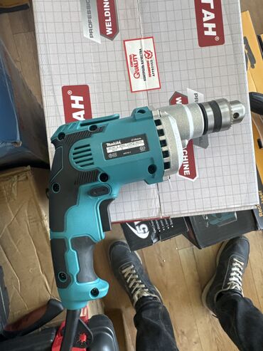 Две дрели для различных задач. Первая – ударная дрель «Зубр», предназначенная для сверления отверстий в различных материалах. Вторая – дрель Makita, подходит для работы с гипсокартоном, обеспечивая точное и аккуратное крепление.