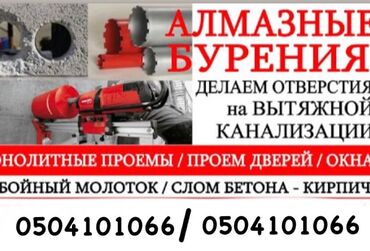 Алмазная резка бетон кирпич алмазная бурение вентиляции скважины канализации Любой сложности всё регионы Кыргызстана
