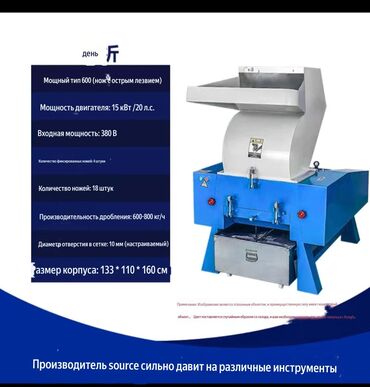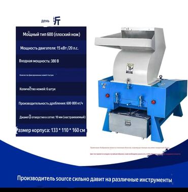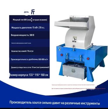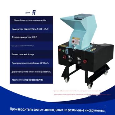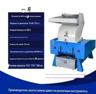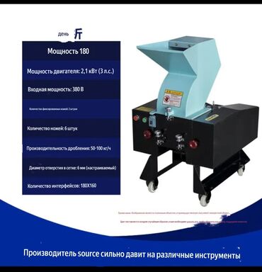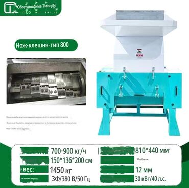 Измельчитель Назначение: - переработка пластика, ПЭ/ПП, ПЭТ, канистр, бочек, замороженное мясо - древесные отходы, паллеты, ветки, фанера, ДСП - резина, автошины (без корда), кабель, ПВХ‑профиль -...