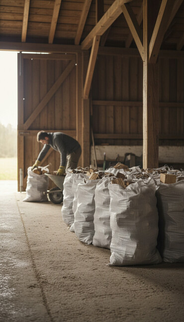 Дрова в мешках (расколоты и упакованы) - Упакованные колотые дрова в плотных полипропиленовых мешках с лентой-стяжкой. - Фракция: чурки и рейки для розжига; удобны для печей, каминов, мангалов, ба...