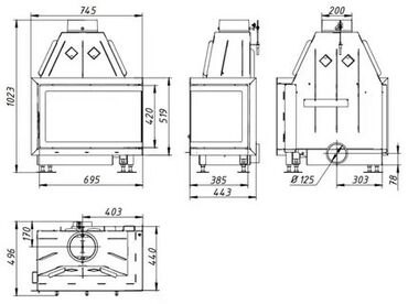Печь-камин на твердом топливе (дровяная) - Материал корпуса: сталь с термостойким покрытием - Большая дверца с жаропрочным стеклом для обзора пламени - Камера сгорания выложена шамотными плитами -...