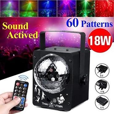 Проектор автоматически реагирует на музыку благодаря встроенному микрофону — световые эффекты двигаются в такт биту, создавая эффект клубного шоу. Устройство формирует более 60 световых паттернов и 240 ярких лучей, равномерно заполняя помещение площадью до 50–100 м².
