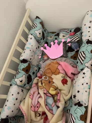 Белая детская кроватка с реечными бортиками и регулируемым уровнем