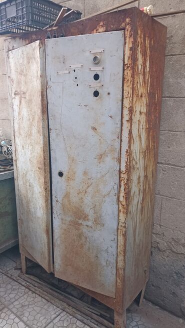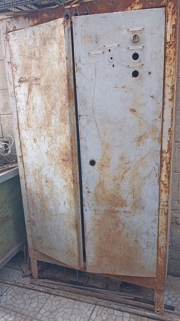 Металлический шкаф-сейф хозяйственный - Материал: сталь, сварная конструкция - Габариты (примерно, по фото): высокий узкий формат, ориентировочно 170–190 см высотой, 55–70 см шириной, 45–60 см глу...
