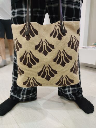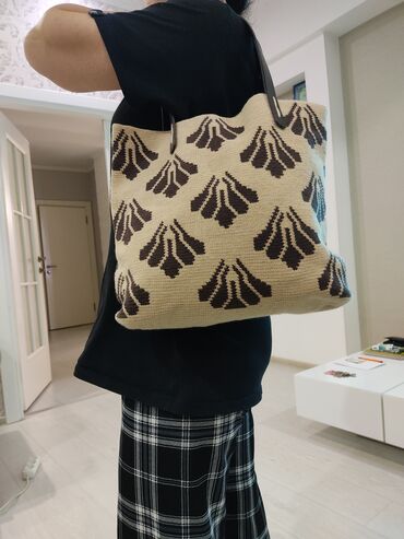 Новая сумка-шоппер женская, цвет бежевый. Модная сумка-шопер с дизайнерским принтом. Выполнена из хлопка. Без подкладки. Размер: 54*45. Район вечного огня Бишкек