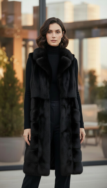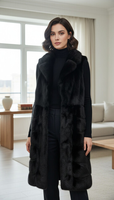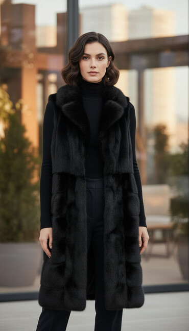 Меховой жилет-накидка, шоколадный цвет. Манишка 🔥🔥🔥😍 - Свободный прямой крой без рукавов, длина до бедра. - Высокий объемный воротник-стойка, можно поднимать для защиты шеи от ветра. - Плотный, мяг...