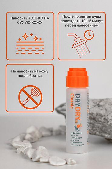 Надоело обильное потоотделение? DRYDRY Classic – это ваш надёжный помощник в борьбе с потом! Это высокоэффективное средство длительного действия подарит вам уверенность и комфорт на весь день.