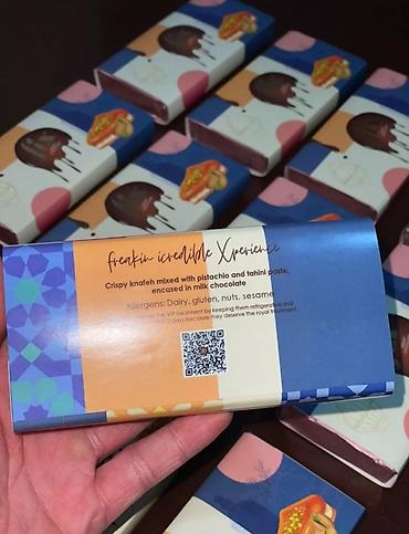Дубайский шоколад SHEKER, вкус фисташки. - Формат: небольшие порционные плиточки/конфеты в индивидуальной обертке (в коробочке-лотке). - Вкус и состав: молочный шоколад с фисташковым наполнителем/...