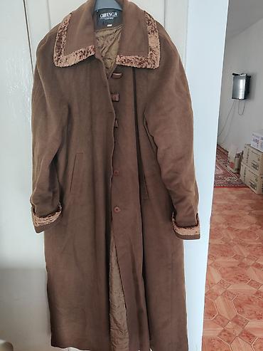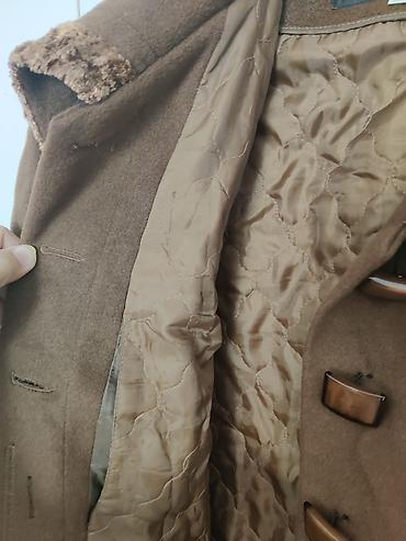 Дублёнка короткая в отличном состоянии размер М, цвет бежевый , 1000 сом. Пальто новое демисезонная кашемир, 52 размер, 1500 сом, темно горчичный цвет
