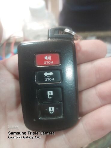 Электронный автомобильный ключ-брелок черного цвета с серыми кнопками. Брелок имеет функции блокировки, разблокировки и открытия багажника, а также кнопку "HOLD" для звукового сигнала. Некоторые мо...Договорная