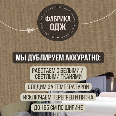 Услуги по ДУБЛИРОВАНИЮ и ДЕКАТИРОВКЕ / УСАДКЕ ткани всех видов. Бесплатная доставка от 600м Адрес: Лермонтова 23 работаем без выходных 24/7 Ждем Вас