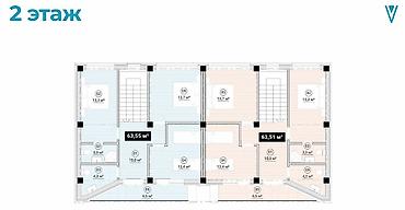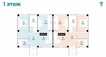 - Общая площадь по этажам: 1 этаж — 64,62 м², 2 этаж — 63,5 м² (итого около 128 м² на секцию).