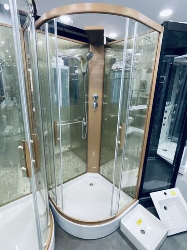- Тип: закрытая душевая кабина с раздвижными стеклянными дверями