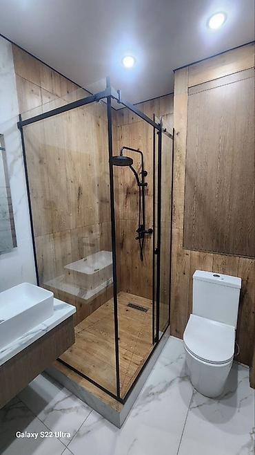 - Встроенная настенная скамья внутри душевой.
