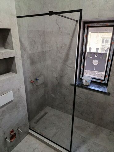 - Прямая стационарная стеклянная панель для душевой зоны.
