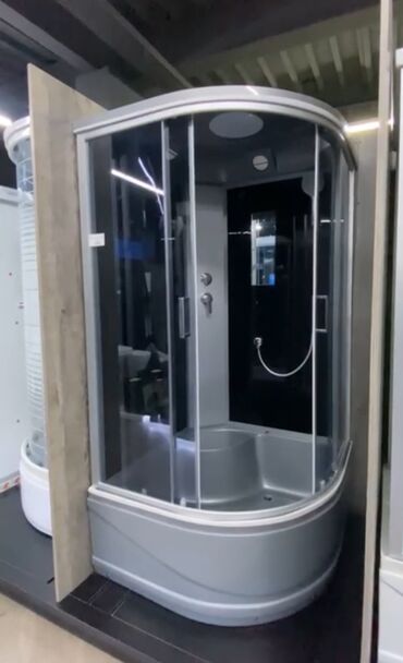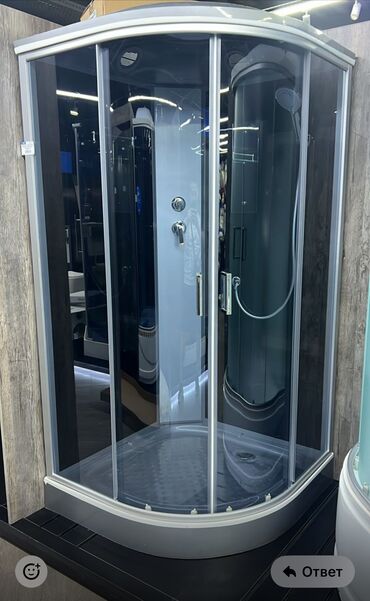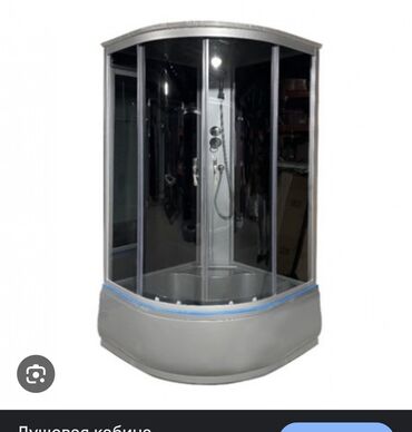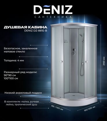 Душевая кабина угловая с глубоким поддоном и раздвижными стеклянными дверями. Основные характеристики: - Форма: четверть круга, угловая установка - Поддон: высокий, антискользящее покрытие, слив п...