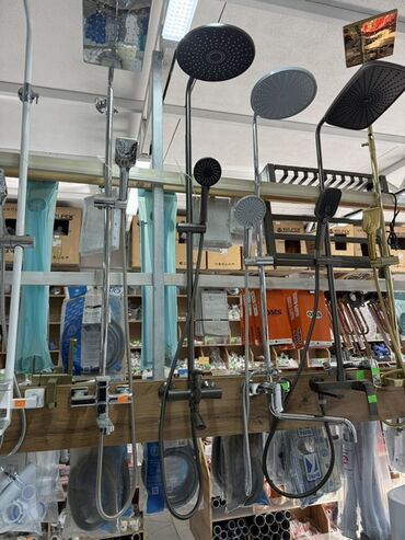 - Широкий выбор душевых стоек с верхним «тропическим» душем и ручной лейкой.