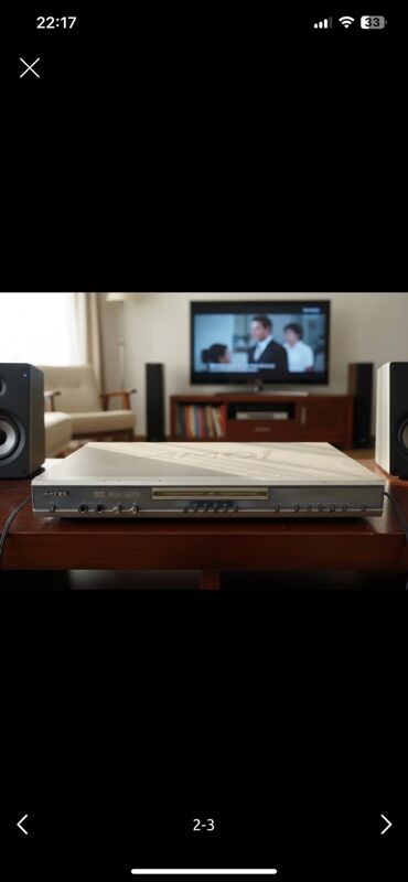 Комплект на фото: сам проигрыватель. Кабели/пульт – по наличию видно на изображениях. Размеры корпуса — низкопрофильный, удобен для тумбы под ТВ. Цвет — серебро с логотипом AMOI на крышке.