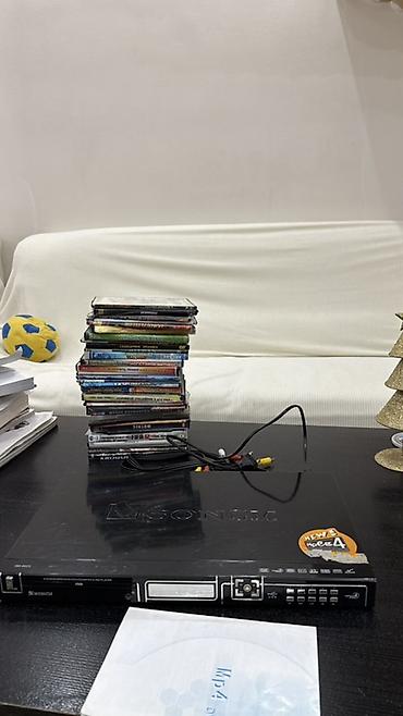 - Комплектация по фото: проигрыватель, AV-кабель RCA, набор дисков